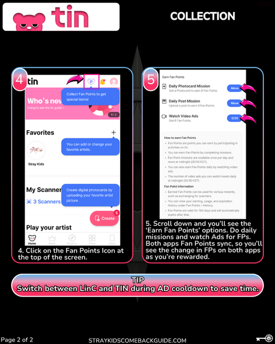 š” TIP: Switch between watching ads in the LINC App and the TIN App to bypass ad cooldown times and collect points more efficiently.