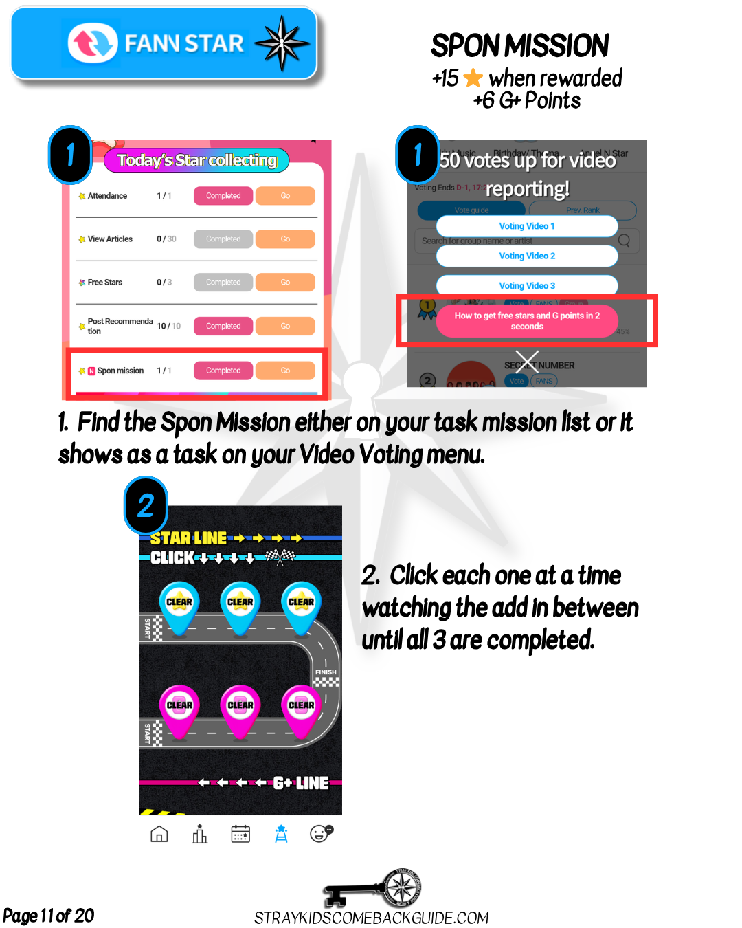 +15 ⭐️ Complete 3 Spon Missions a Day (watch 3 ads) (See page 11 of guide)