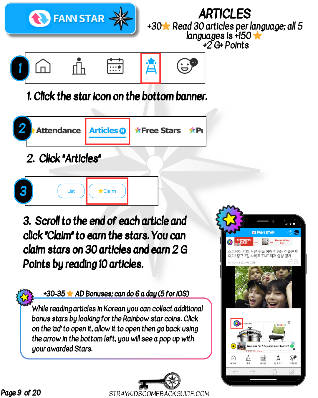 +30⭐️ Read 30 articles per language; all 5 languages is +150 ⭐️ (See page 9 of guide)