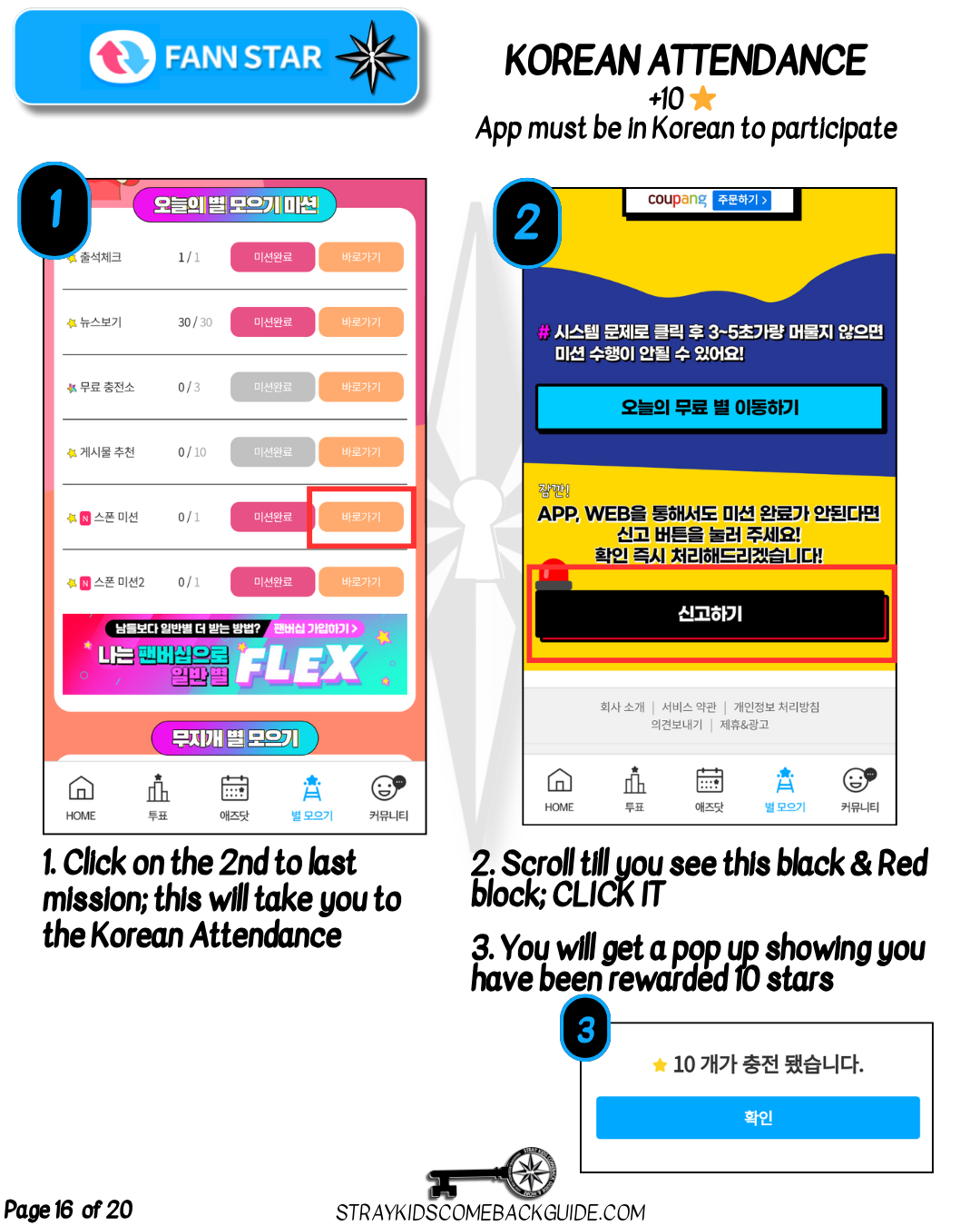 +10 ⭐️ Do Korean Attendance (See page 16 of guide)