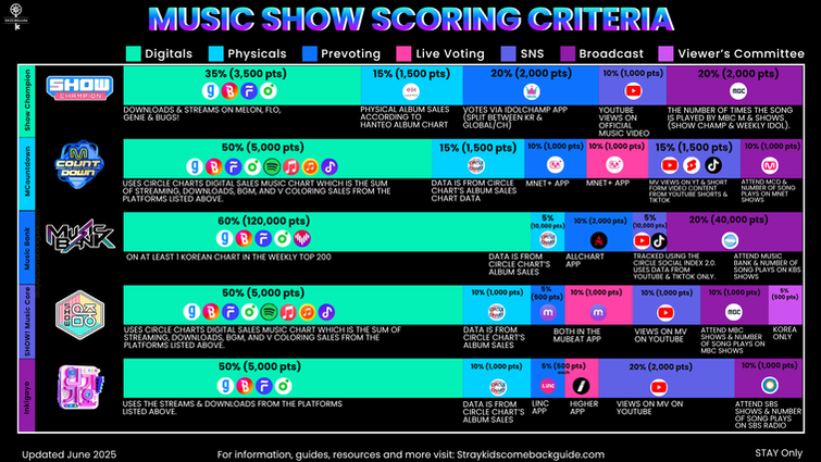 Each music show has different criteria, making it essential for STAYs to understand the requirements and prepare accordingly. Data for each scoring category is collected leading up to the live broadcast, meaning every vote, stream, and purchase matters.